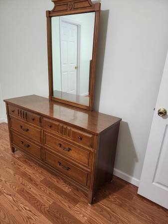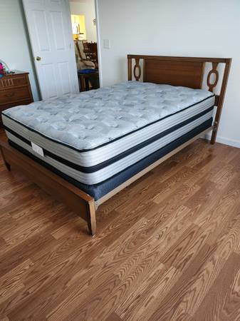 This is a full size bed with headboard and footboard. Mattress is 2 months old. Set includes a dresser with mirror and a chest of drawers and a night stand. Also includes 2 sets of sheets, mattress...