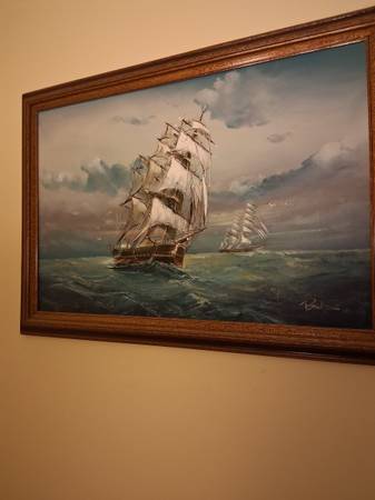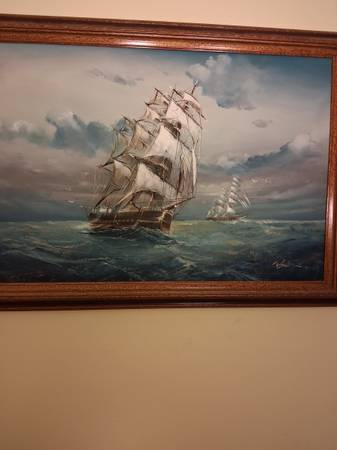 Billie painting of tall ships at sea