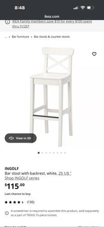 SET of 4 IKEA Ingolf Barstools / Bar Stools (WHITE) — Solid wood . . . Put together and never used