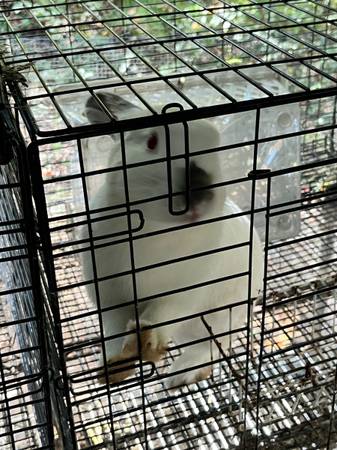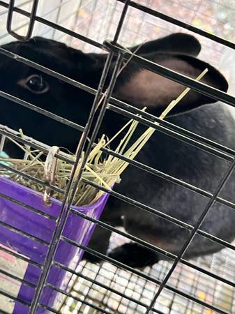 New Zealand and one New Zealand and Rex mix and rabbit cage and feeders 120
