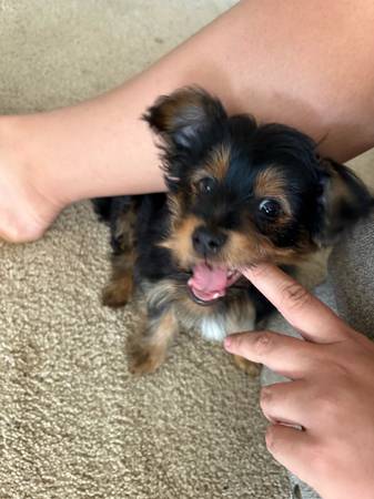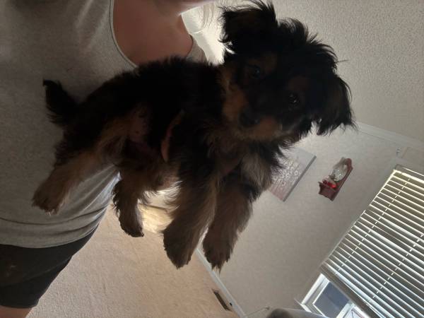 He’s 13 weeks old he hasn’t not had any shots he is create trained he will come with his bed . He has been around all farm animals and cats and dogs .
