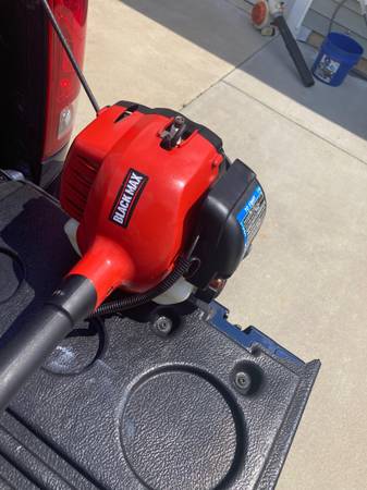 Black Max straight head trimmer. I might have used this 3-4x, in great condition but has a pinhole in the fuel tank. Has not been started in over 2yrs so assume it needs a carb clean in addition to the fuel tank issue. $40
