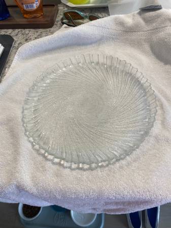Beautiful clear crystal plate featuring a scalloped edge design. Perfect for serving desserts, appetizers, or as a decorative piece. Excellent, no chips or cracks ● Size: 10-inch diameter