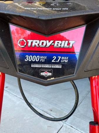 Lightly used like new Troy-Bilt pressure washer 3,000 psi 2.7 gpm