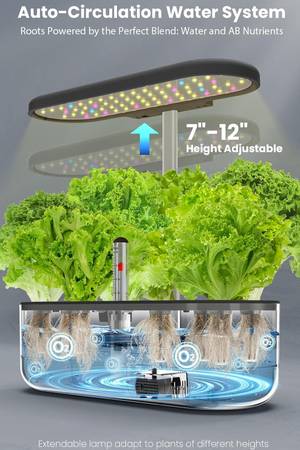 Herb Garden Planter Indoor Kit, Indoor Gardening Hydroponics Growing System with Pods, Water Pump, Height Adjustable