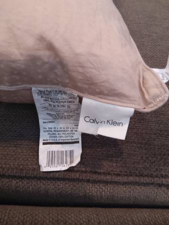 Tahari king size pillow (firm) Calvin Klein King size pillow (soft) Pillows were never used for bed pillows, they were used for sham pillows.