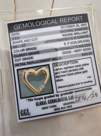 GGL Report “IF” (Internally Flawless) .1c Diamond; 16’ Box Link Chain