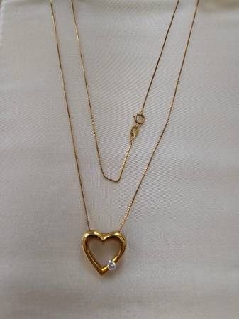 18k Gold Necklace and Heart, Petite Flawless Diamond