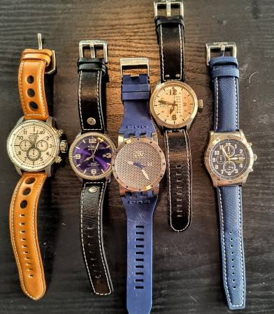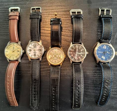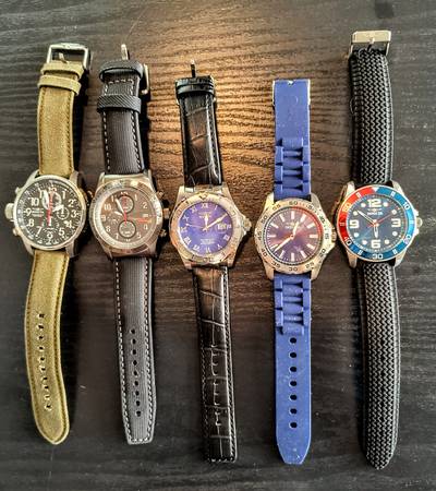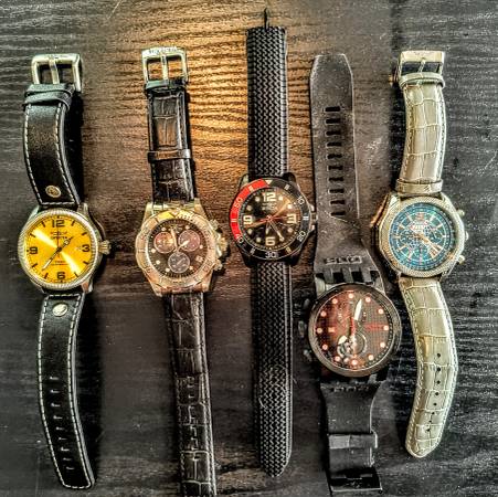 20 Invicta watches for sale. They are all on straps, all between 43 and 49 mm. They are all quartz and they all require batteries. I am selling these as a PACKAGE ONLY for $100. If you know a good jeweler or if you are able to replace the batteries yourself you will wind up with 20 working Invicta watches. I am not interested in selling single pieces. The price is firm. If you are a serious buyer, please get in touch.