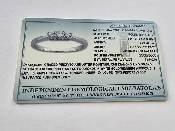 IGL Report “IF” (Internally Flaweless) Diamonds