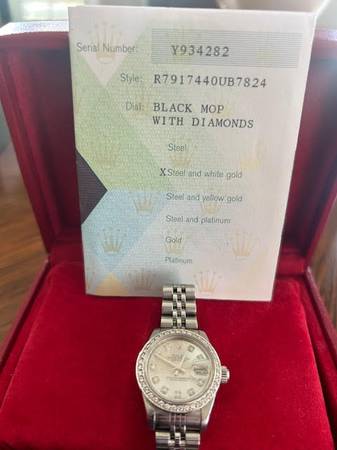 ROLEX , SS WOMEN'S DATEJUST WITH CUSTOM ROLEX MOP DIAL(WATCH ORIGINALLY HAD A BLACK MOP DIAL) AND CUSTOM DIAMOND BEZEL (WATCH ORIGINALLY HAD A WHITE GOLD BEZEL WITHOUT DIAMONDS) YEAR APPROX 2005...