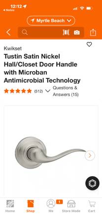 Lot of 18. NIB - Tustin Satin Nickel Hall/Closet Door Handle with Microban Antimicrobial Technology - New in box. I have 18 available. Retail for $36 each, selling lot for $180