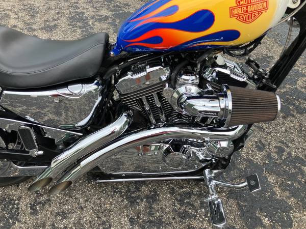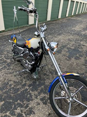 2004 Custom Harley Davidson Chopper. Custom HD paint job, rebuilt from the frame up. 18 degree front rake with 5 star front rim. Immaculate condition. Never rained on or washed with water. Garage kept and never kept outside. Serious inquiries only. No trades.