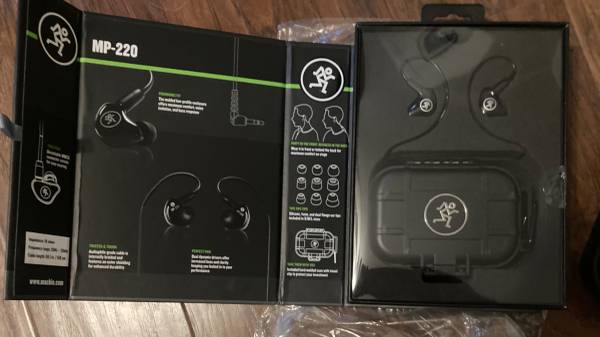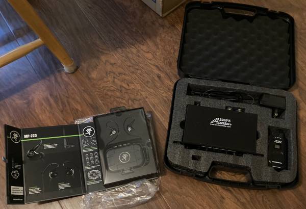 For Sale In-Ear Monitor System. Audio 2000's system with Brand New Mackie MP-220 Ear phones. Audio 2000's purchased in 2024 and in perfect condition. Mackie Ear buds are new and NEVER USED.