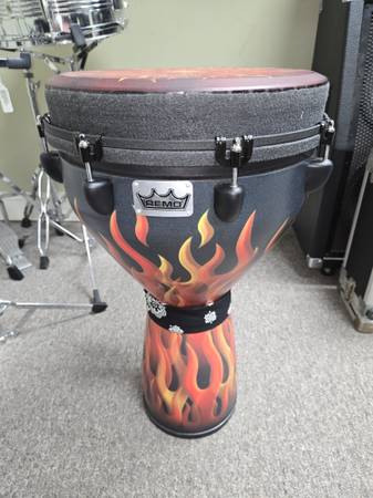 Remo Mondo 14 x 25, with SkyNdeep Flame finish. Produces a warm tone with great volume projection. It's ideal for professional or recreational drumming.