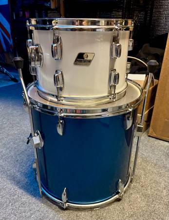 12” Ludwig tom in white and 16” no name floor tom in electric blue, solid drums with normal players wear. Great for a practice set, jam room, additional drums, etc…. Trade for 16, 17 or 18” Zildjian...