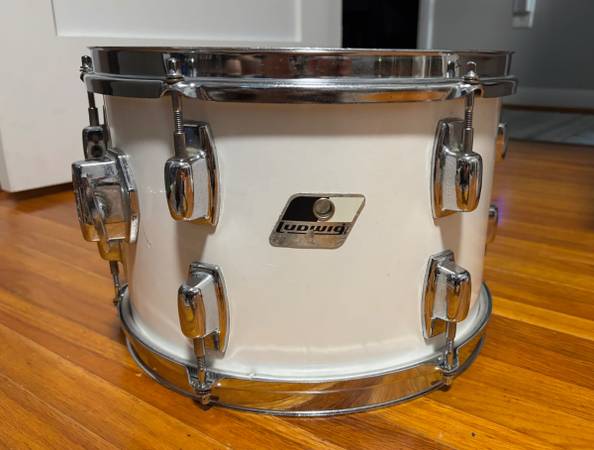 12” Ludwig tom in white and 16” no name floor tom in electric blue, solid drums with normal players wear. Great for a practice set, jam room, additional drums, etc…. Trade for Zildjian A crash or...