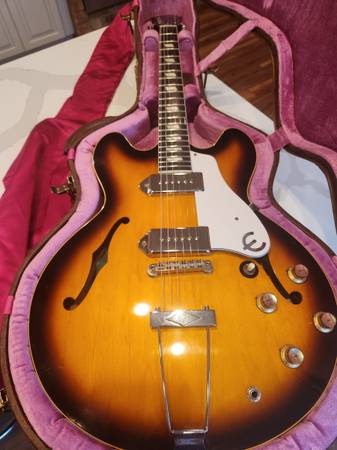 For sale a near perfect example of John’s 1965 Casino made possible my Gibson & Epiphone. This is the queen essential and the BEST reproduction Lennon Casino ever made. This guitar has all paperwork and catalogue/poster and the original case also Ex++ condition. Good luck finding another one, no one ever sells these. Always wanted one and traded a stunning 2002 R8 Les Paul to get this. Have had it a few months but alas the neck is too small for me. Will ship $3,200.