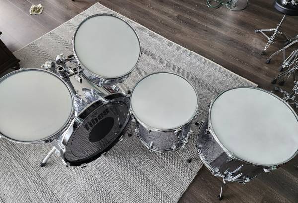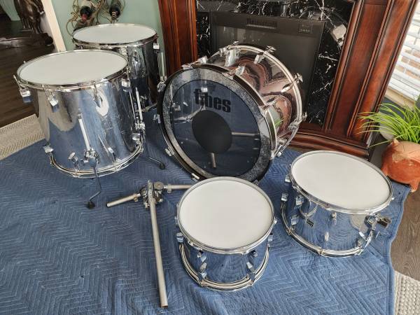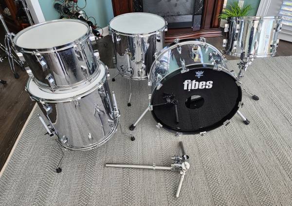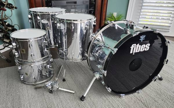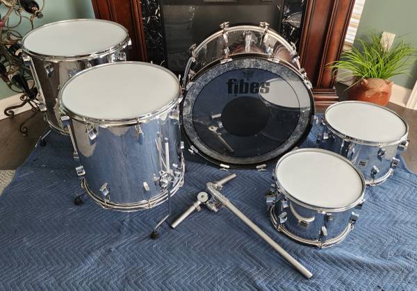 Vintage 70's Fibes 5pc. drum set. Chrome over fiberglass.