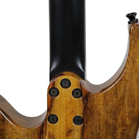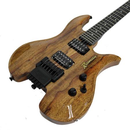 Body: Solid bookmatched African Blackwood body with licensed Steinberger tremolo bridge. Roman logo on the body and black hardware.