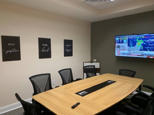 CONFERENCE ROOM RENTAL - The perfect place to meet potential clients, co-workers, business partners in Myrtle Beach. comfortable executive seating for Eight - Large 55" Sony Google TV for your ZOOM Meetings W/HDMI floor jack under table to project your own images on the TV screen- Two USB charging stations, Additional HDMI & USB connections for TV