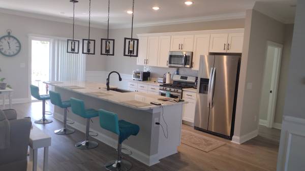 All Brick Ranch Home, 3 car Garage, 3 Bedrooms, 2 bath, ( 2 Walk in Showers) plus jetted tub, 9 ft ceilings, brick paver patio, screen in porch with Great view, wide end of water, lvp flooring all areas except baths,( tile) high end washer , Dryer, with nice cabinets, granite Cabinets, tile backsplash even in laundry room, tile floor in screen in porch, concrete edging around entire house, needs nothing, as New, single older owner, kept very nice, could be Sold furnished!