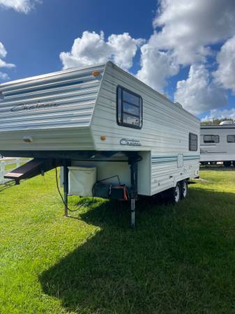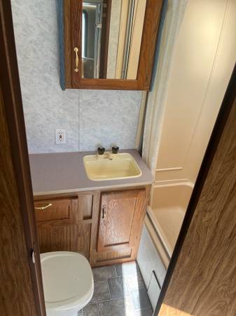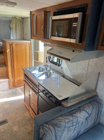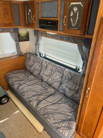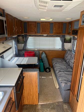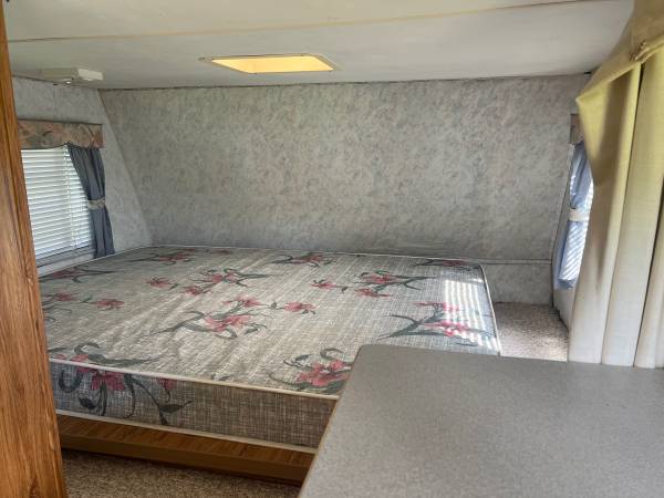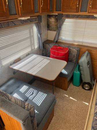 This camper is ready to go! With plenty of sleeping space in the from bedroom and dinette converts to sleeping space. Contact Sunset RV Inc at
