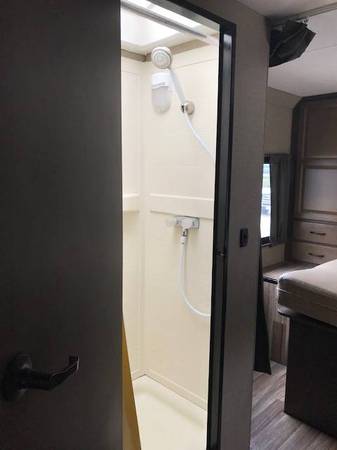 It comes with a Onan 4k generator, gas stove, microwave, frig, all the holding tanks, bathroom w/shower.