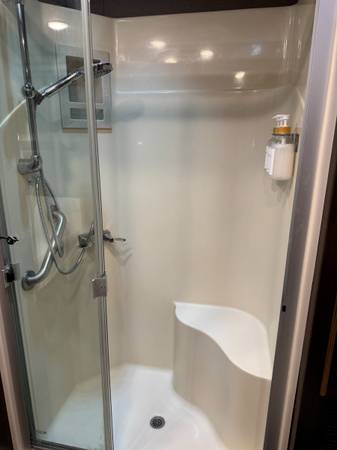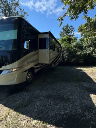 Outside, the Allegro features a large awning, exterior Smart TV, and plenty of storage space for all of your gear. The powerful engine and smooth ride make driving this motorhome a breeze, while the automatic leveling system ensures a stable and comfortable setup at your destination.
