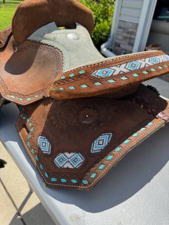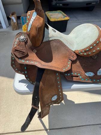 The saddle is being sold “as-is”. Missing some parts (stirrups and decorative pieces) but still a great saddle for a younger rider.