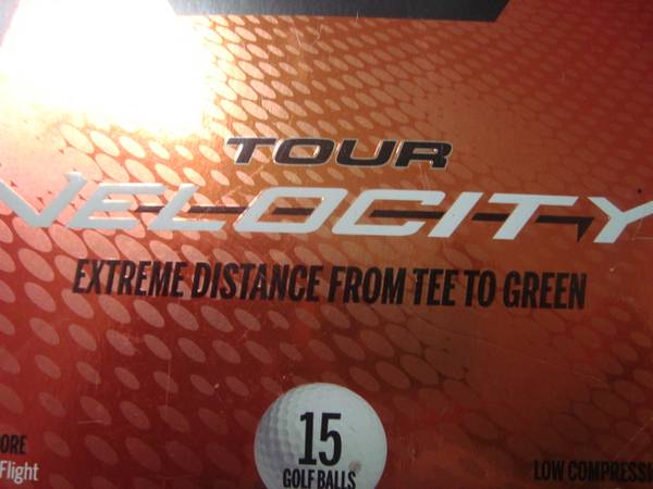Total of 18 Wilson "Tour Velocity" golf balls in new 3-ball sleeves - three each blue sleeves and three gold sleeves. I don't know what the difference between the two packages are - for the amateur player, probably none. If you chase the little balls around the course you'll want to pick these up - they have to be a lotmore money at the pro shop or even mail order. Call to arrange pickup.