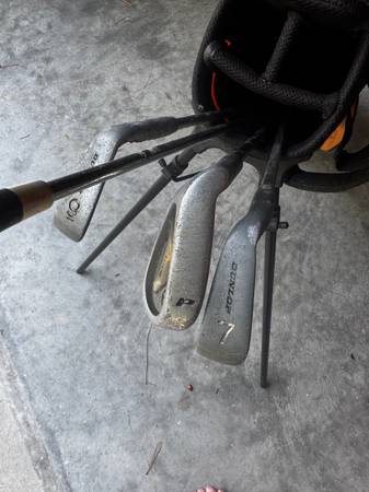 Bag needs cleaned but in decent shape good for young golfers starting out. Includes some adult left handed clubs
