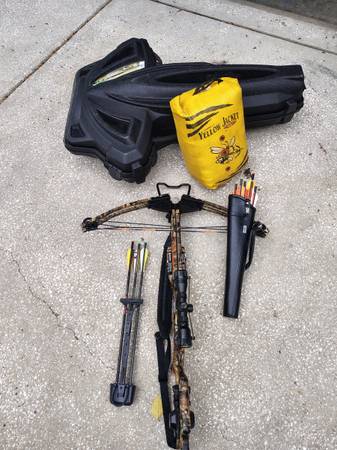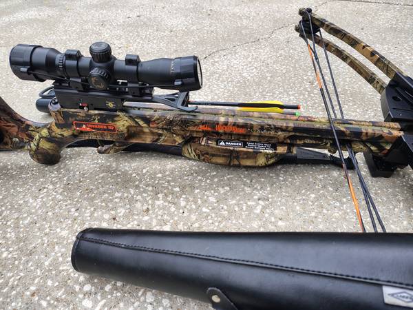 Ten Point Wicked Ridge Invader HP Cross bow with Hard case, 5 Aluminum Bolts , 5 Carbon Bolts, Roper Cocking , Sling ,3X Scope Bow mount 3 bolt quiver, 8" x 16" target bag .I hardly used this Bow