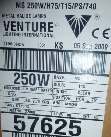 I have 24 of these NEW OLD STOCK Venture Metal Halide Lamps, check out pics and label to make sure this is what you are looking for. $10 each or $200 for all 24.