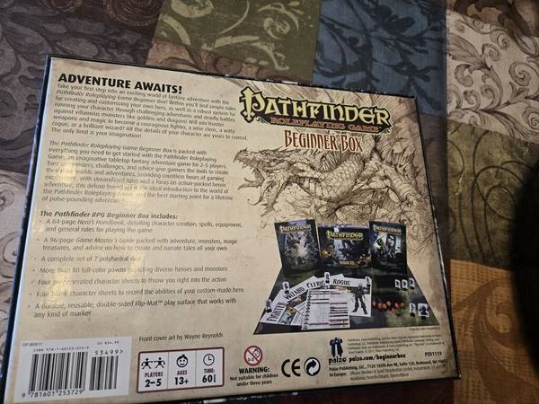 Pathfinder Role playing Game Beginner Box Complete Set Includes: Hero's Handbook Game Master’s Guide Set of 7 Dice Pre-generated Character Sheets Cardboard Monster & Character Pawns Double-sided...