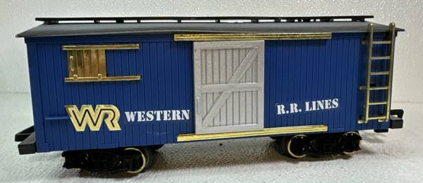 Vintage train car, Silver Rail Express, 1986 toy train, replacement train car, blue western car, collectible toy train, retro toy collectible, 1980s train car, toy rail car, vintage railroad toy, classic train accessory, hard to find train car, replacement toy part, toy collector piece, vintage kids toy, old fashioned train car, plastic toy train, western theme toy, nostalgic train set, toy rail system, rare toy collectible, vintage playset part, train hobby accessory, collectible railroad toy, replacement car for set, blue train collectible, 80s toy train, western express toy, toy replacement piece, rare vintage toy. Measures approximately 12" Long X 3 1/2" Wide X 4 1/2" High.