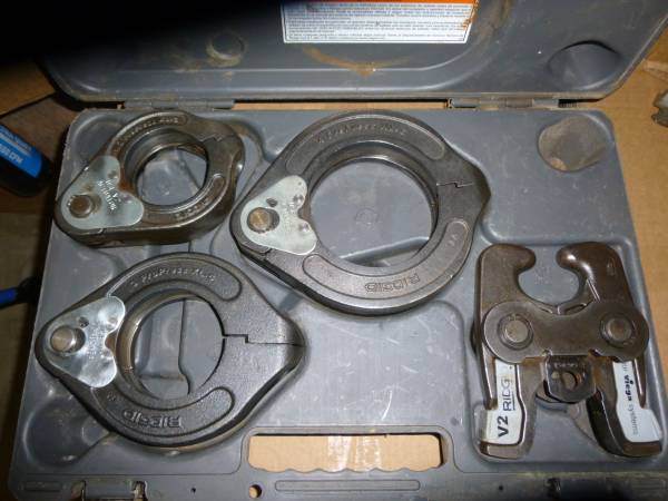 Here is a real good used set of Ridgid XL-C Pro Press 2 1/2" and 3" and 4" clamps with the V2 Ring actuator and carry case and also has the 110 Volt RP 330 Tool in real good working order. This set has been on many jobs and never let operator down. Outside of case is not pretty its been working and in the back of trucks traveling.