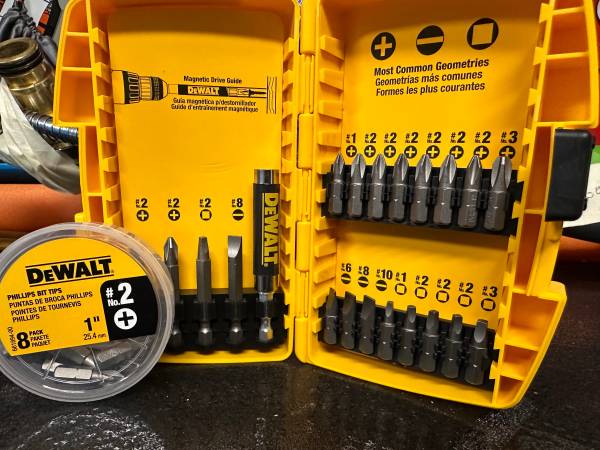 Drill/ driver comes complete with manual and carry bag. Drill is in excellent working order. Included are 4 (2 Craftsman, 2 Dewalt) sets of bits.