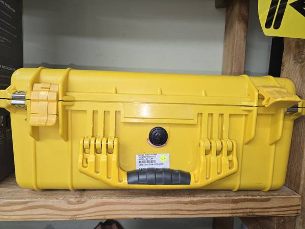 This is a Pelican yellow case. External dimension is 21" X 17" X 8". (162428C)