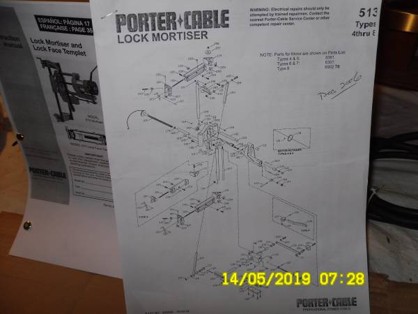 Porter Cable Model 513 Mortiser in excellent shape comes with instruction manual and one mortising bit, ( CASH ONLY and NO SHIPPING PICK UP ONLY )