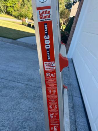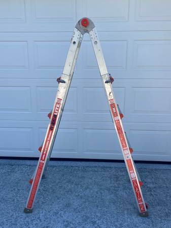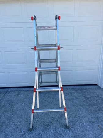 Little Giant multi – use aluminum ladder. Step ladder size is 4 to 7 feet. Ladder extension size is 9 to 15 feet. Model # 17. Built in wheels for easy transport. Can set up in multiple positions....