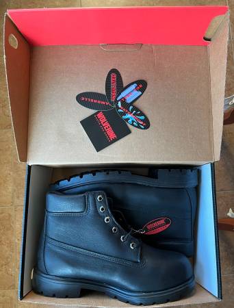 Wolverine waterproof 6" high black, steel toe, size 10.5 wide.