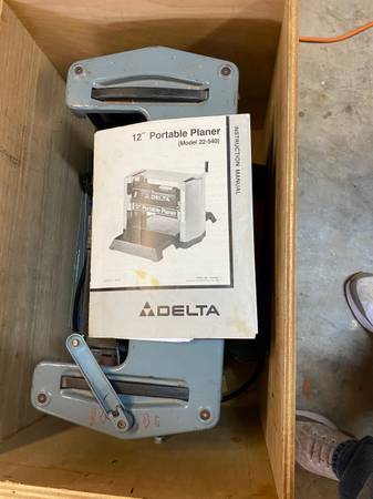 This is a 12" Delta Planer with a roll around heavy duty storage crate , manual and extra new knife set (4 reversible 547 blades, new are $45+ EACH!).