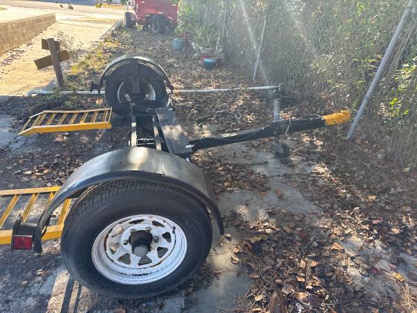 heavy duty tow dolly, has very good tires and new lights added as well as cosmetic (rivited metal on fenders) repairs . please reach out by text 8 am- 9 pm at 8 four 3 -3 six o -36 nine 7 with questions. will be around this week then wont be back till December