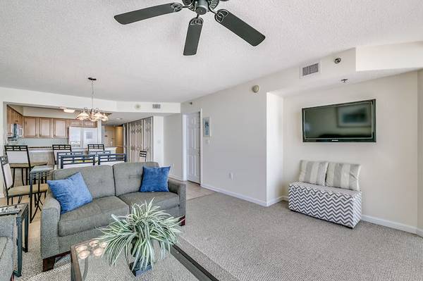 Enjoy Crescent beach and stay at one of the most luxurious oceanfront condos In north Myrtle Beach, South Carolina. Crescent Shores Condominiums and Resort is the place to stay at North Myrtle Beach. This popular two tower ocean front building offers a lazy river, an ocean front pool, indoor heated pool, kiddie pool, 2 over sized ocean front hot tubs, an exercise/fitness room, high speed internet, separate dining room, outdoor tables on balcony, fully equipped kitchen, built in microwave, radiant stove top oven, breakfast bar, nice size living area with a queen size sleeper sofa, flat screen TV, washer, dryer, granite counter tops, ceramic tile floors and large outside storage units for beach items. Over 1500 Square Feet of living space! Master bedroom has a king size bed, huge walk in closet, with a private jacuzzi bath tub in master bath, double sinks, separate door to ocean front balcony and walk in closet. The second bedroom has two queen size beds with an adjacent full hallway bath. New 55 inch Smart TV in Living Room.