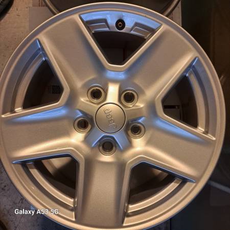 Four JEEP 17 x 7.5 inch take off wheels from a 2024 Gladiator (taken off when vehicle was brand new). Lug setup is 5 x 127mm. (5 x 5 inch). The wheels are in beautiful as new condition with center caps, Mopar locks, lug nuts and original factory TPM sensors (sensors alone are worth over $50 each). All 4 wheels are for sale for $500.00 **I WILL NOT RESPOND TO SPAM, SCAM OR STILL AVAILABLE EMAILS. LISTING WILL BE REMOVED WHEN SOLD.