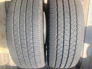 Have two very good used Goodyear Wrangler Fortitude HT all season 110T truck tires for 18" rims. Price is for both tires.