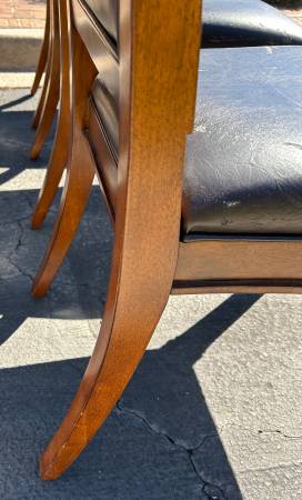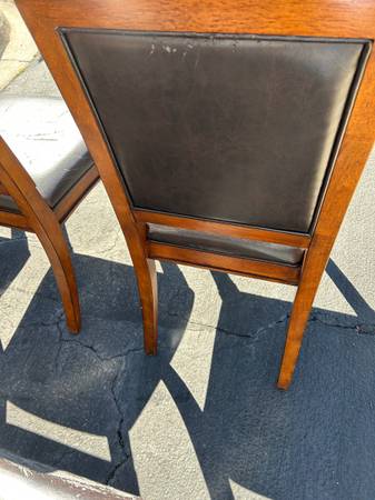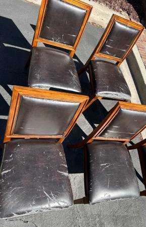 I have five free chairs. They are sturdy and heavy, but the leather is peeling. Maybe you can refinish them. Text me only if you were interested.