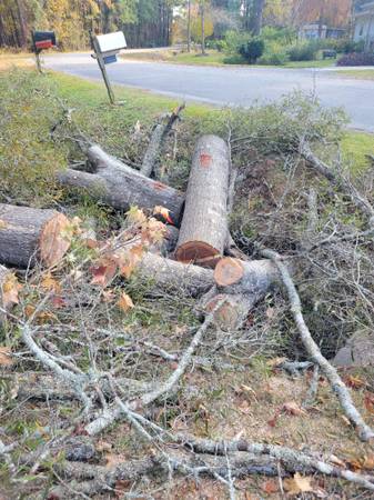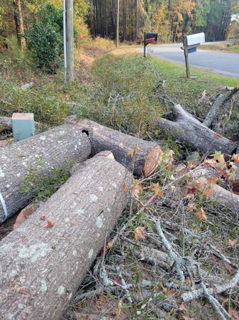 Big logs from oak tree cut down on 11/20. will need equipment to pick up.